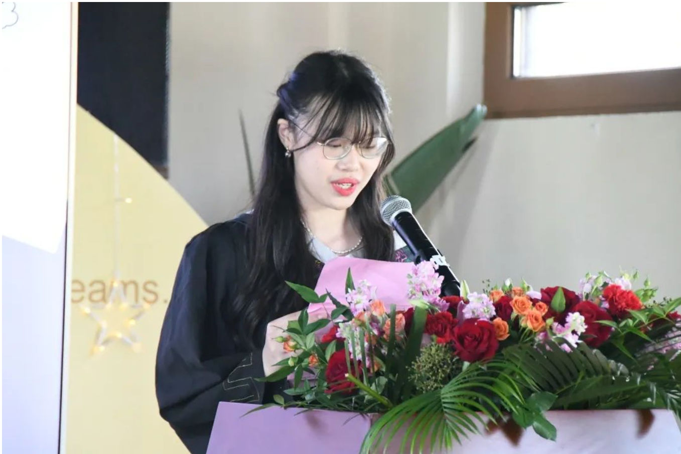 对我们所有人而言,此刻是一个既欢喜但又稍带感伤的时刻。之所以感伤,是因为今天标志着一个阶段的结束——这可能是你们最后一次见到面前的老师和同学,因为以后我们可能会与这些朝夕相处的同学、老师逐渐失去联系,但是我们一定会牢牢记住这段时间发生的所有事情。我们之间的友谊,不会因为时光流逝而遗忘,不会因为山高水长而消失。它将成为我们心中一段非常特别的,不可替代的宝贵财富。这四年来你们所做的努力,为你们今后的学习和生活打下了坚实的基础,也会成为你们成长路上的重要能量。以后的日子会朝着更美好更光明的方向前进。现在,让我们每个人用些许时间来回忆这四年中属于我们自己每个人的美好时刻。