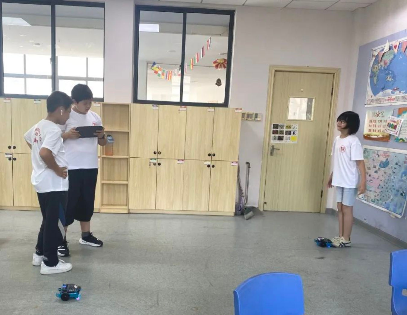 在学习的过程中,同学们的确感到了一定的难度,但是当自己亲手制作的机器成功完成了巡逻功能、智能传送等项目后,他们越挫越勇,不断地调整编程内容和反复试验,为机器人后续的复杂编程做好了充足准备。