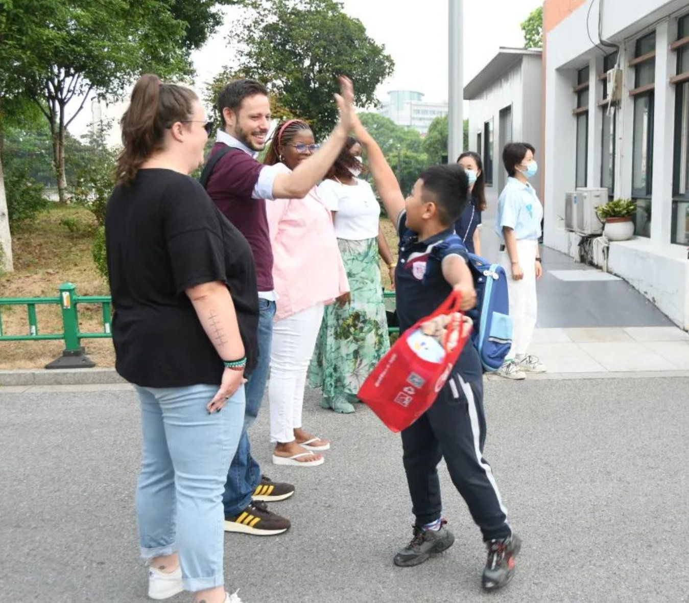 同学们在手印墙或玻璃上郑重地印上自己的手印,也是许下自己的承诺,他们一定会成为优秀的LFIS学子。