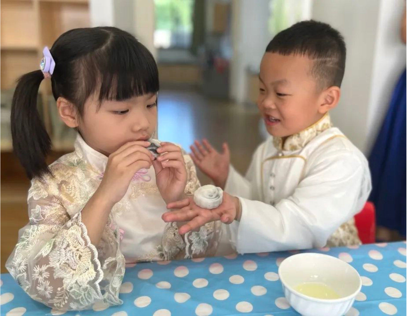 八月十五月正圆,中秋月饼香又甜。幼儿部的孩子们化身为小小“烘焙师”,在老师的带领下现场制作起了月饼。孩子们争先恐后地擀饼皮、揉馅儿、压模具,忙得热火朝天,不亦乐乎!
