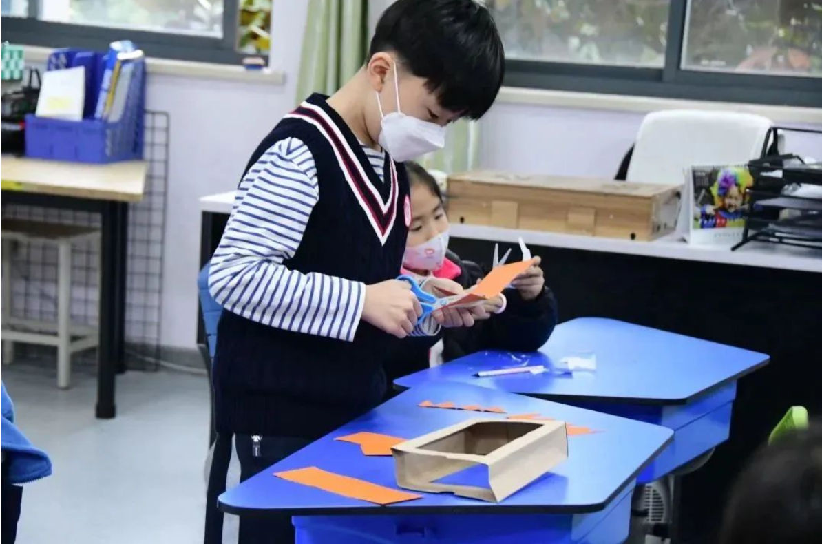 老师邀请同学们上台进行光影的展示,随着不同光源的切换,盒子里面的动物影像也发生了神奇的变化!通过这场有趣的实验,同学们在发挥动手能力的同时,也更加理解了阴影和光源之间的关系。