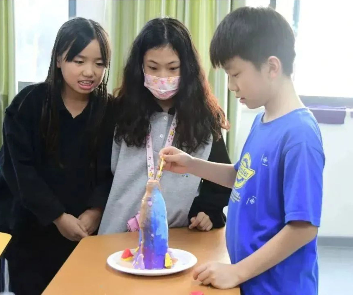 同学们注意到,他们的模型会喷出泡沫,泡沫从顶部溢出,从斜坡流下。这项活动让学生们亲眼看到“火山爆发”是如何发生的,以及它对附近地区的潜在破坏和影响。