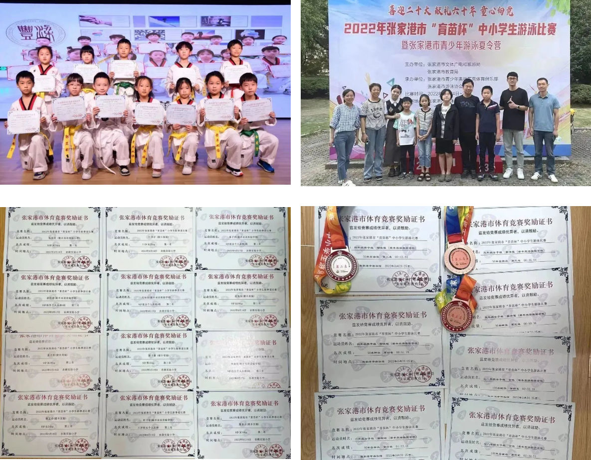 我校跆拳道校队在张家港“育苗杯”小学生跆拳道比赛中荣获团体总分第二名,我校多名同学在张家港“育苗杯”小学生跆拳道比赛、游泳比赛中斩获单人奖。这一年,我校队员们不惧骄阳,勤练技术,苦练体能,铸就了一支勇于挑战、敢于拼搏的队伍,以优异表现诠释了团结、拼搏、超越的精神。
