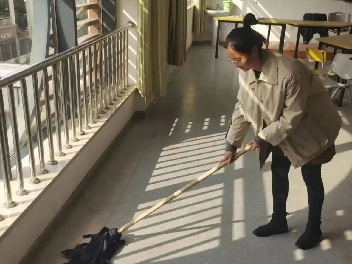 我校全体教职工积极参与着校园卫生的清洁工作以及环境布置,校园里到处涌动着老师们忙碌的身影。