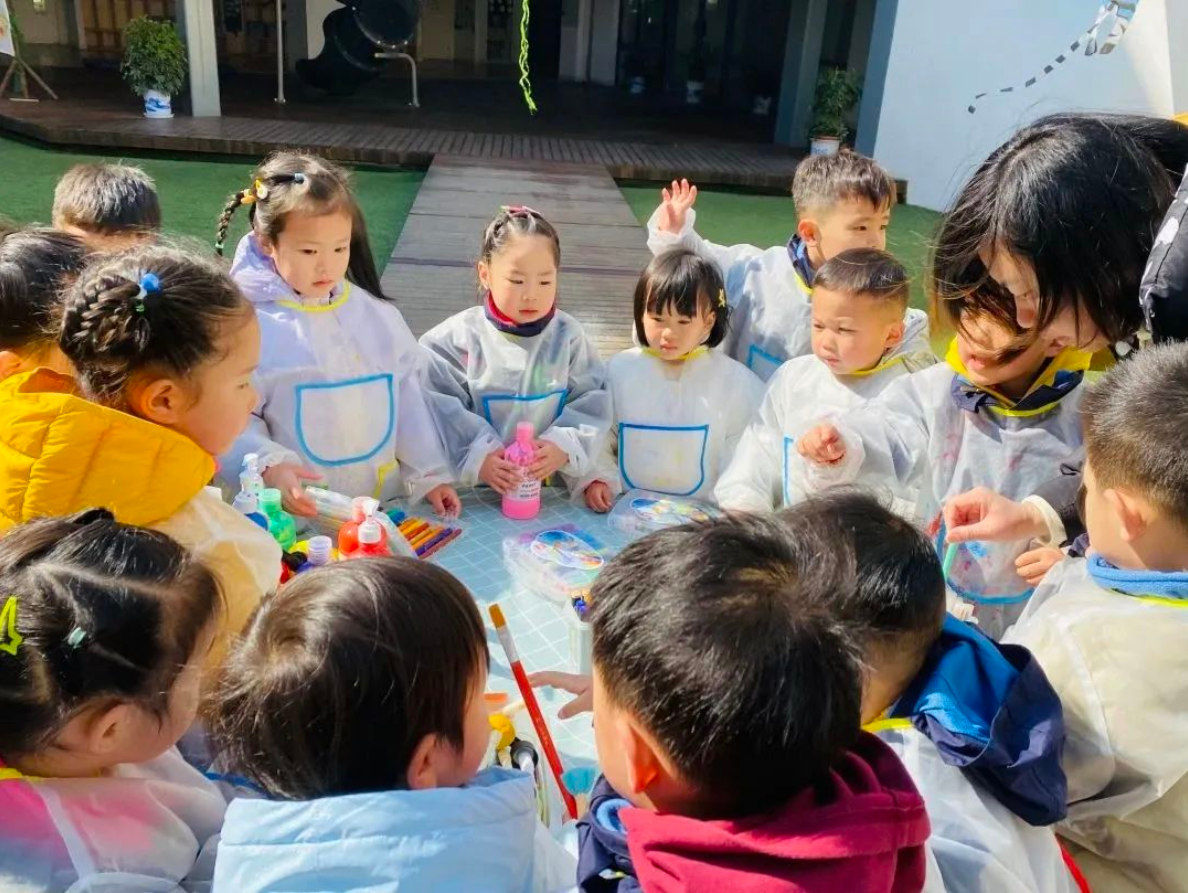 除了透明雨伞,透明塑料瓶、透明球等皆可作画。他们挥洒着天真烂漫的奇思妙想,画出一道道春天的彩虹。
