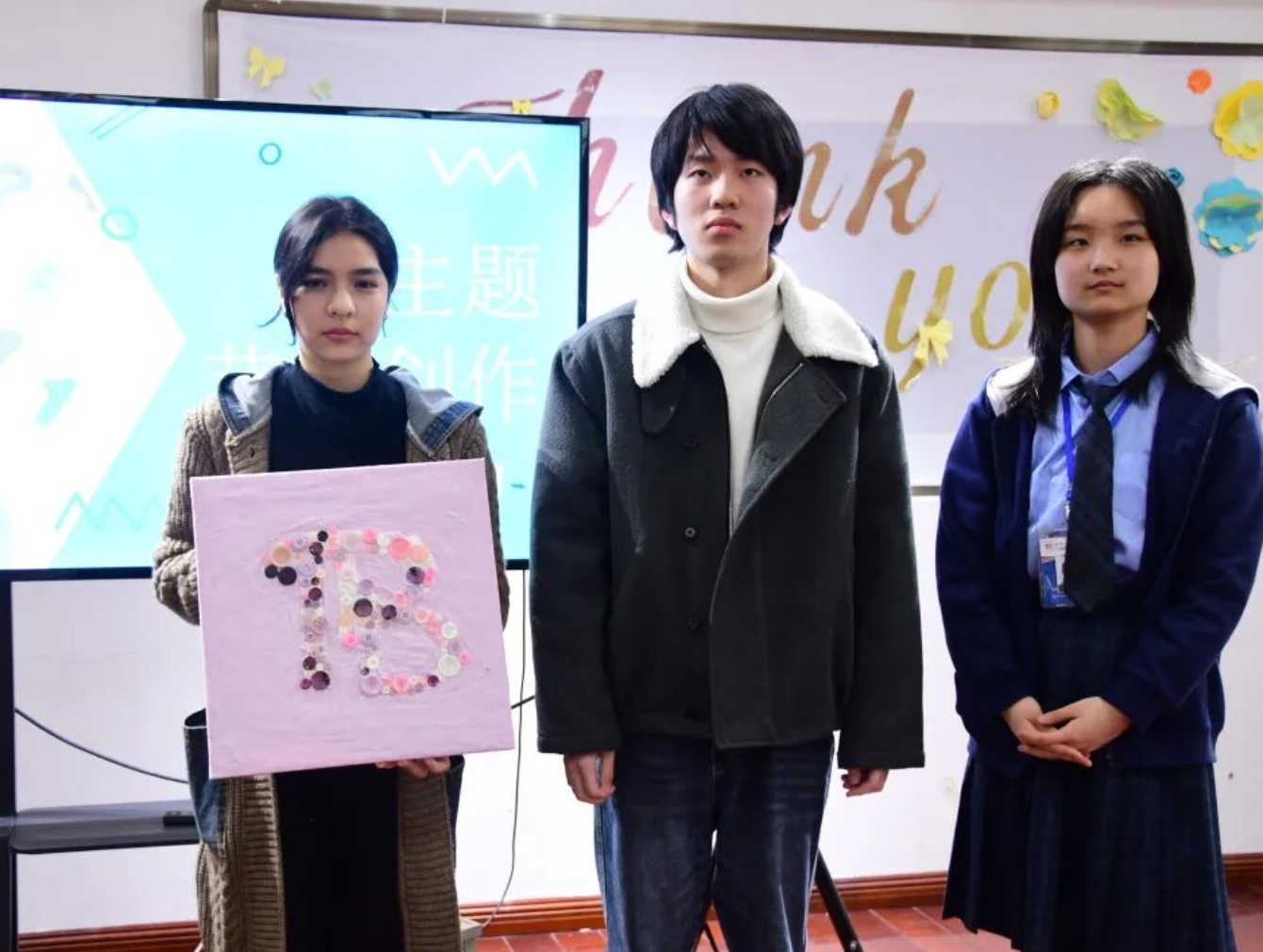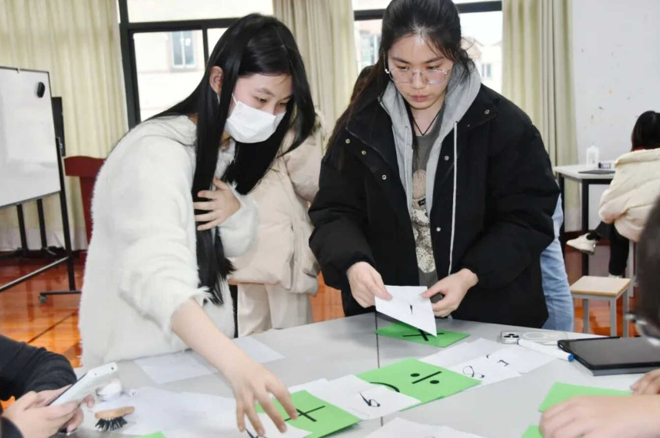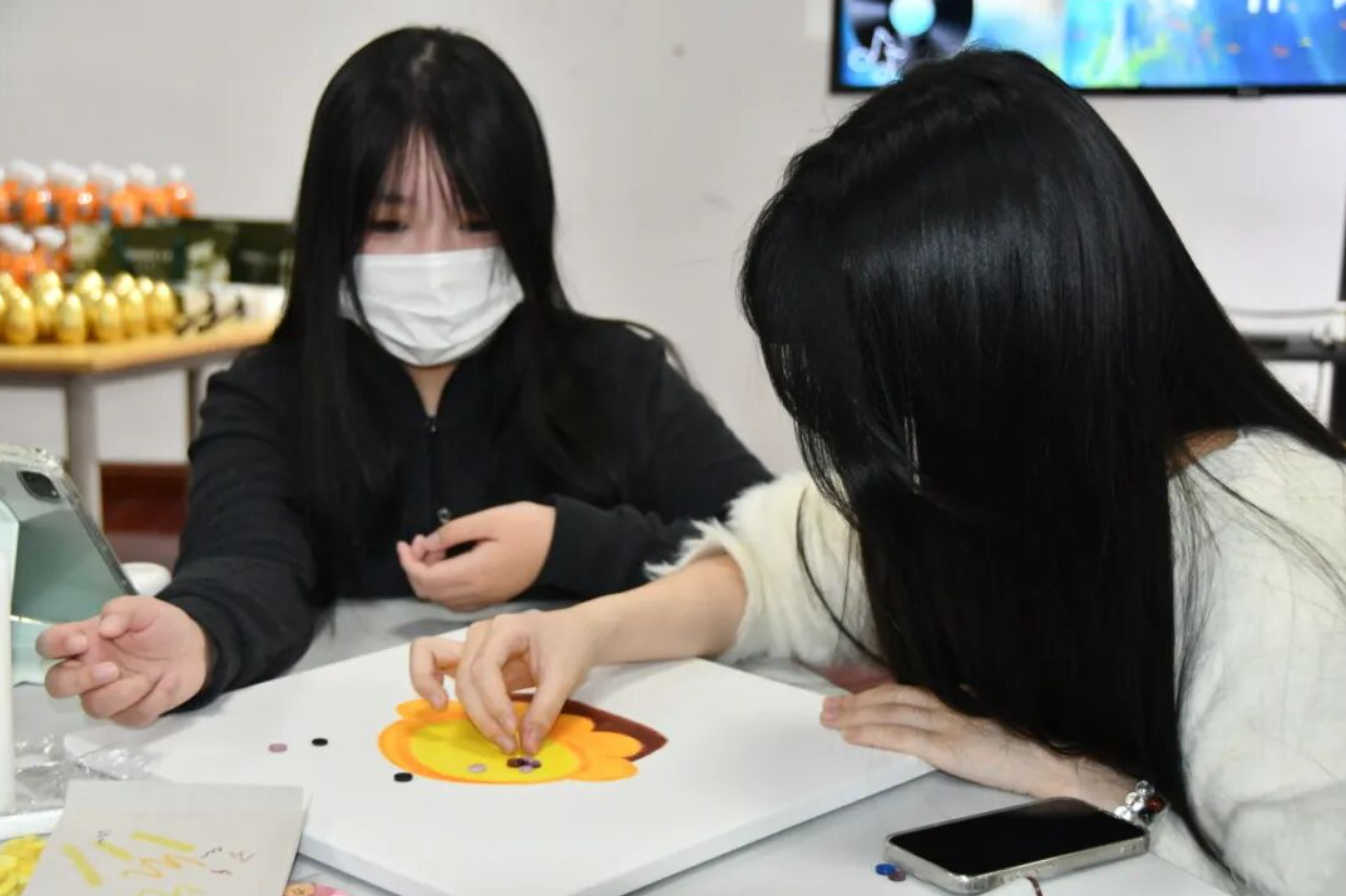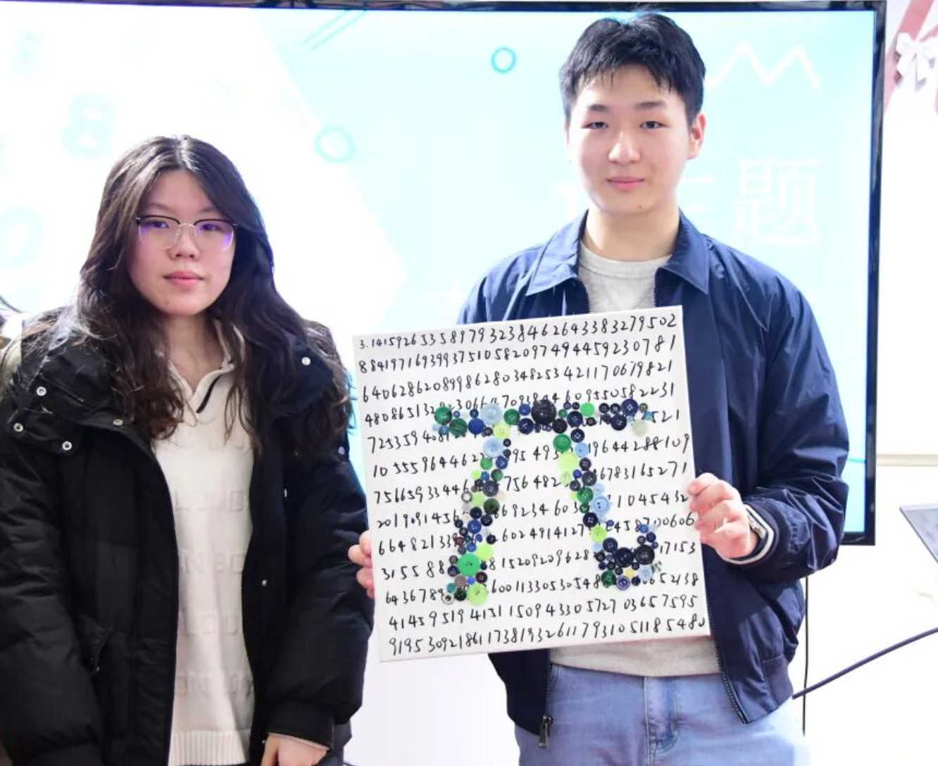 同学们结合数学与视觉艺术,利用刚刚寻宝得到的纽扣作为物资,制作出π主题的作品。大家不仅能体验到了π作为数学常数的魅力,还充分发挥了自己的艺术创意。