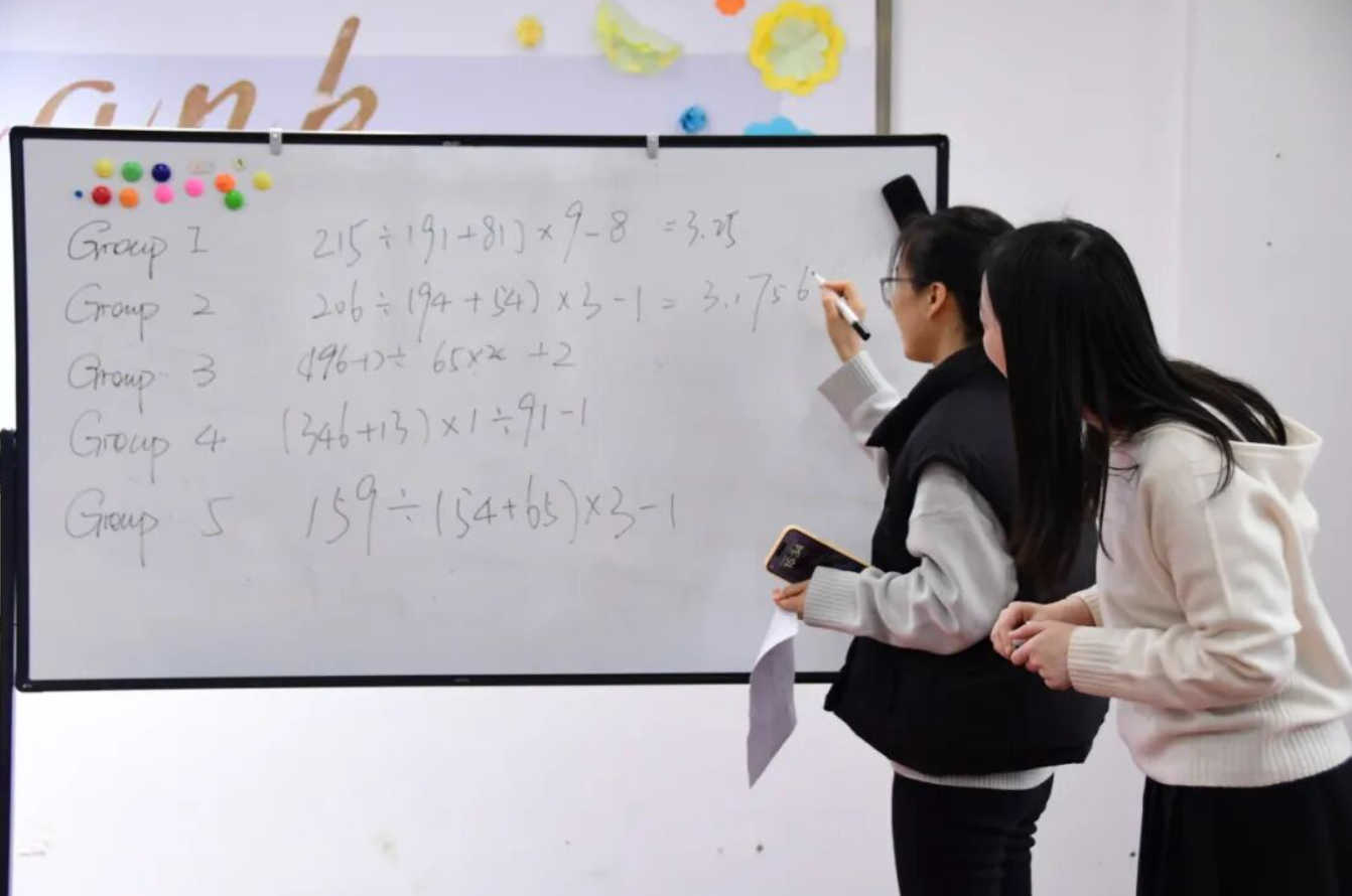 利用上一环节中获得的10个数字,大家通过巧妙的组合和运算,构造出尽可能接近π(3.14159)的算式。通过加减乘除运算和括号的使用,团队成员共同合作,在规定的时间内构建算式,一起比拼答案与π的接近度。