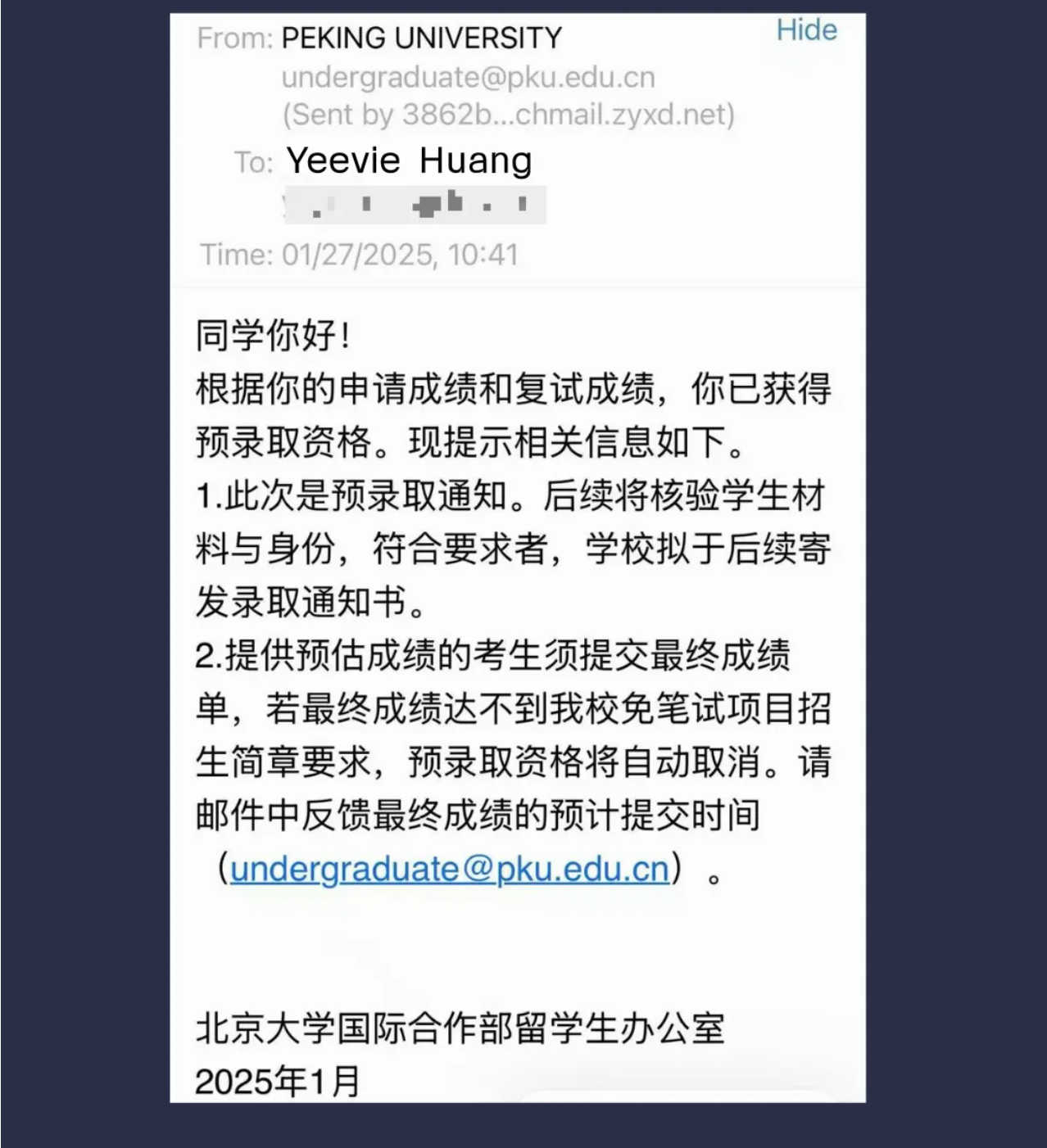 梁丰双语实验学校高中部2025届马来西亚籍的毕业生黄以芊同学,以其卓越的学术能力和综合素养,成功收获了中国顶尖学府——北京大学的预录取通知书!