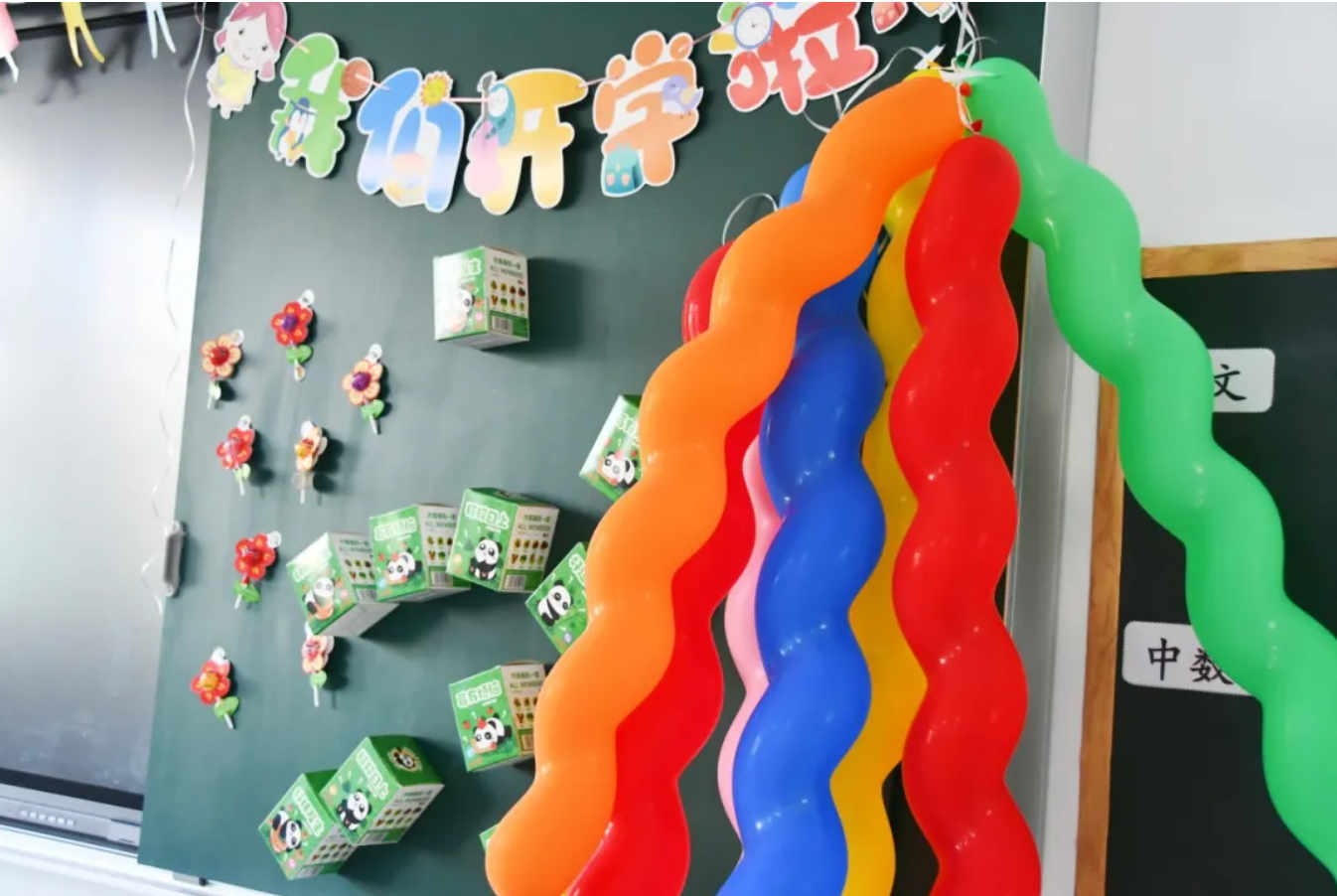 沿着走廊慢慢走,每一间教室都藏着惊喜。黑板上绘着五彩的欢迎画,丰富多彩的抽奖券仿佛长出了翅膀,等着孩子们来揭开第一份幸运。