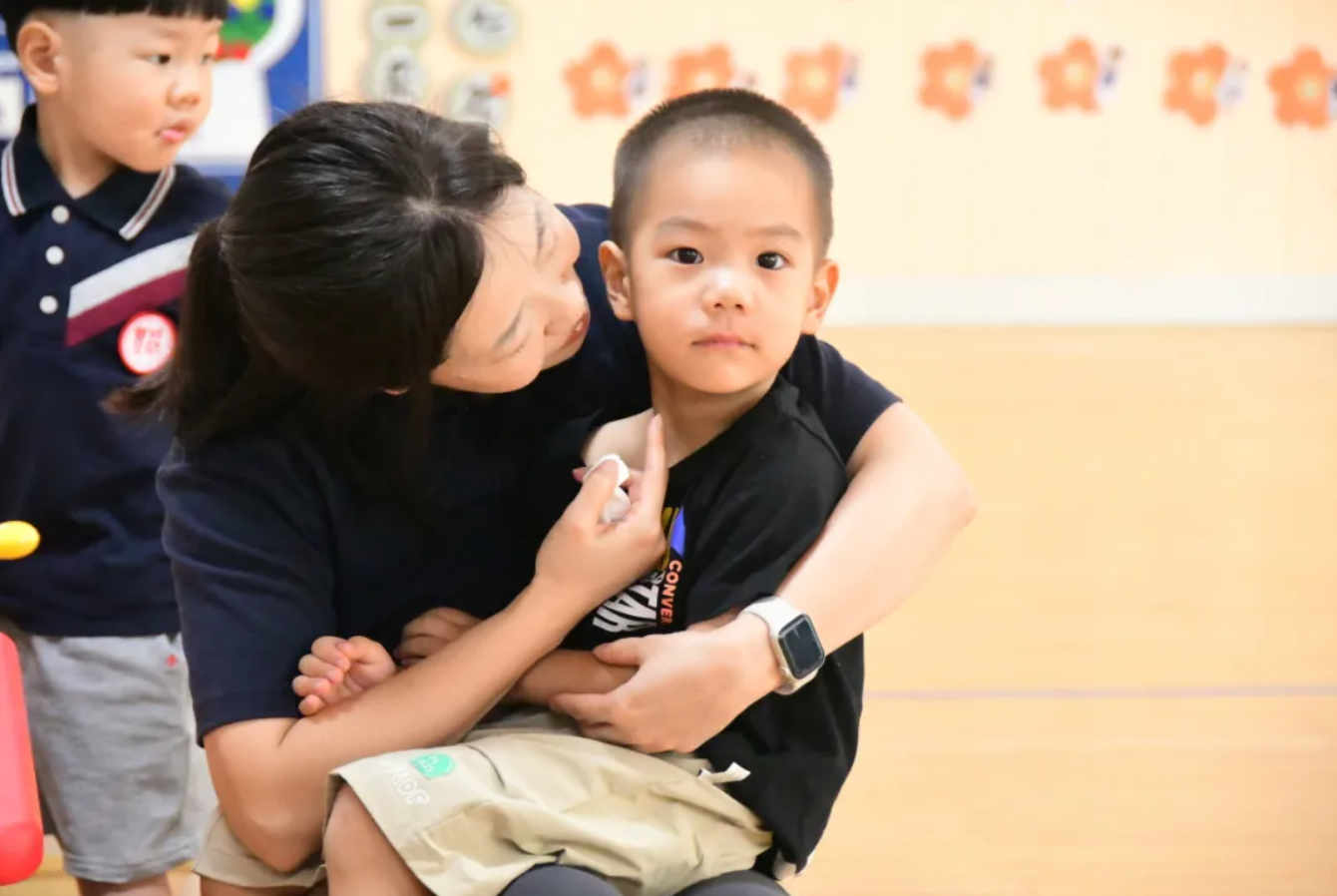 教学楼的另一头,托小班的哭声像小阵雨,下得断断续续。小小的身影缩在老师怀里,眼泪像断线的珍珠。老师轻轻拍着孩子的背,哼着柔和的歌谣。渐渐地,抽泣声小了,好奇的大眼睛开始打量这个陌生的世界。成长的勇气,就藏在泪水洗净的目光里。
